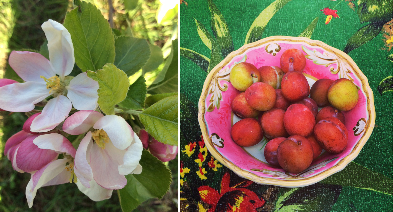 Apple blossom in spring and plums ripening in the sun. I like the life of a farmer's wife.
