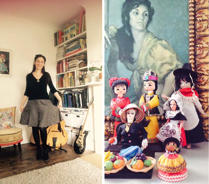 My parcel of treasure included a 1960s shift dress and a 1940s style dress, a polka dot skirt, age unknown, two cardis, a couple of tops, a pair of dolls and some sparkly beaded necklaces!